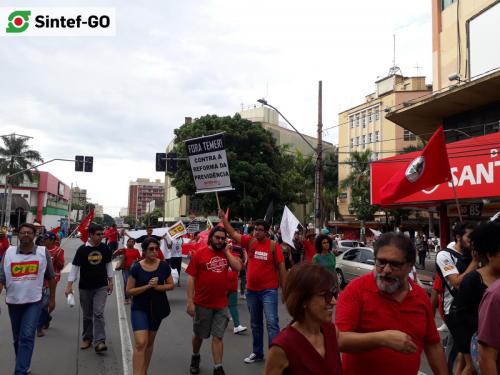 Esta sexta-feira, 30 de junho, foi o dia dos trabalhadores de diversos segmentos cruzarem os braços em protesto contra a reforma trabalhista e da Previdência. Em todo o Brasil, as manifestações se intensificaram, e em Goiânia os trabalhadores e estudantes protestaram no centro da capital. O Sintef-GO, que integra o Fórum Goiano contra as reformas, ajudou a construir o movimento! Este é o terceiro ato de Greve Geral convocado pelas centrais sindicais para barrar o avanço das propostas do governo Temer no Congresso Nacional.