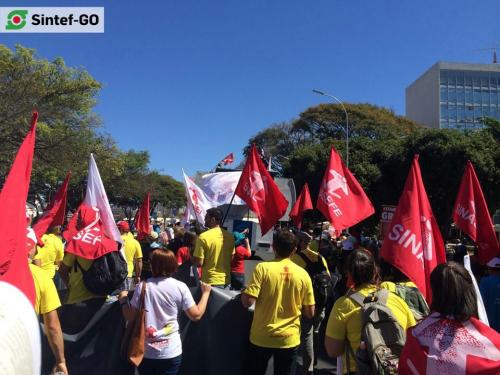 Sintef-GO presente na Marcha dos Trabalhadores em São Paulo. A concentração dos trabalhadores ocorreu em frente ao Masp e a marcha percorreu a Av. Paulista em protesto contra o pacote de medidas do governo em prejuízo à classe trabalhadora.