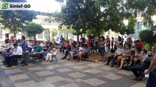 Estudantes, professores, técnicos-administrativos de instituições de ensino, profissionais da saúde, militantes de movimentos sociais e demais trabalhadores se reuniram para protestar contra os ataques do Governo Temer e denunciar a farsa do ajuste fiscal, proposto na PEC 55. Mobilizados na Ocupação do Câmpus IFG, os estudantes da se juntaram aos servidores para marchar rumo ao centro da Capital. No trajeto, foram distribuídos panfletos à comunidade, enquanto os manifestantes se reversavam ao microfone. As palavras de ordem alertaram sobre os perigos dos projetos que tramitam no Congresso Nacional.