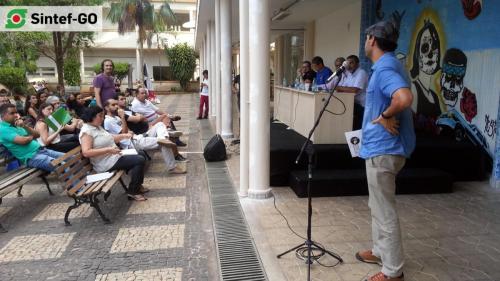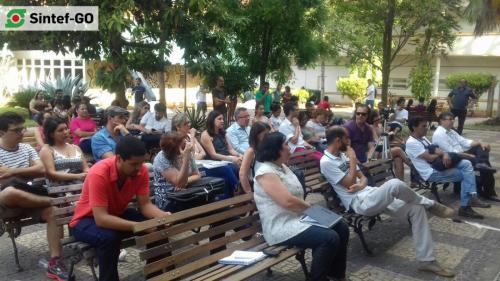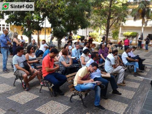 No dia 16 de junho ocorreram paralisações dos servidores públicos convocadas por centrais sindicais em todos os cantos do Brasil. No Instituto Federal de Goiás, o Sintef-GO convocou os servidores para refletir sobre a atual situação da Instituição com as políticas impostas pelo Ministério da Educação para a Rede Federal de Educação Profissional e Tecnológica. O momento debateu os rumos que a atual administração do IFG tem indicado para instituição, sobretudo no que tange à aplicação das portarias 17 e 246 do MEC, Plano de Desenvolvimento Institucional (PDI), Regimento Interno e gestão de pessoas.