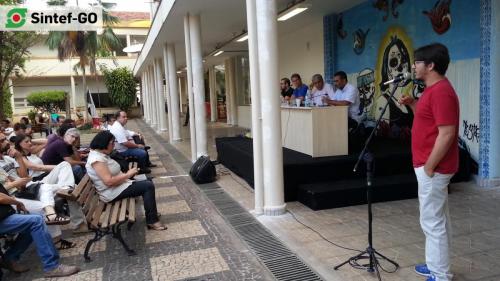 O Sintef-GO promoveu, no dia 19 de dezembro, uma Assembleia Universitária com o reitor do Instituto Federal de Goiás (IFG), estudantes e servidores, com o intuito de estreitar relações entre gestores e a comunidade acadêmica e fortalecer a autonomia institucional, principalmente diante de intervenções externas e de judicialização dos movimentos sociais e classistas. Além disso, o evento objetivou elucidar como as mudanças políticas e econômicas podem resultar na precarização e sucateamento da Rede Federal de Ensino.