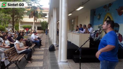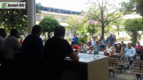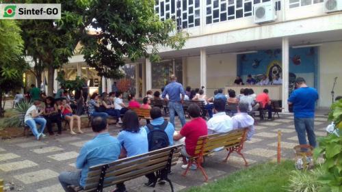 Reunidos no Câmpus Goiânia do Instituto Federal de Goiás (IFG), os servidores da base do Sintef-GO deflagraram greve na manhã de quinta-feira, 20 de outubro. A greve iniciou a partir de 25 de outubro, sendo uma deliberação para aglutinar forças na luta contra o ajuste fiscal promovido pelo governo Temer, especialmente, contra a PEC 241, o PL 257, reforma da Previdência Social e contra a medida provisória de reformulação do Ensino Médio, entre outros ataques à classe trabalhadora e aos direitos sociais. A paralisação das atividades foi decidida por professores e técnicos-administrativos, sendo 88 votos a favor e 28 contra.