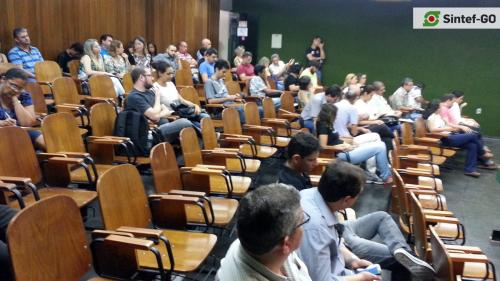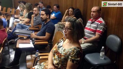 No dia 30 de setembro, servidores e estudantes compareceram ao Câmpus Goiânia para participar da Audiência Pública com o reitor do IFG, Jerônimo Rodrigues da Silva. A iniciativa do Sintef-GO objetivou discutir abertamente as pautas que comprometem o funcionamento do IFG e sua função social. Estiveram em discussão as políticas do atual governo e suas implicações sobre a Rede Federal de Educação Profissional, Científica e Tecnológica em todo o Brasil, com destaque para medidas de ajuste fiscal (por meio da PEC 241 e PL 257), a Lei Orçamentária Anual (LOA) e o contingenciamento de recursos, além da proposta de reformulação do ensino médio. Na pauta interna, a auditoria do IFG foi muito criticada, sendo questionado o seu papel e limite de atuação. Também foram destacadas as cargas horárias dos servidores técnico-administrativos e docentes, além de discussões sobre recomposição de conselhos da instituição.