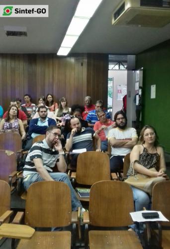 No dia 30 de setembro, servidores e estudantes compareceram ao Câmpus Goiânia para participar da Audiência Pública com o reitor do IFG, Jerônimo Rodrigues da Silva. A iniciativa do Sintef-GO objetivou discutir abertamente as pautas que comprometem o funcionamento do IFG e sua função social. Estiveram em discussão as políticas do atual governo e suas implicações sobre a Rede Federal de Educação Profissional, Científica e Tecnológica em todo o Brasil, com destaque para medidas de ajuste fiscal (por meio da PEC 241 e PL 257), a Lei Orçamentária Anual (LOA) e o contingenciamento de recursos, além da proposta de reformulação do ensino médio. Na pauta interna, a auditoria do IFG foi muito criticada, sendo questionado o seu papel e limite de atuação. Também foram destacadas as cargas horárias dos servidores técnico-administrativos e docentes, além de discussões sobre recomposição de conselhos da instituição.