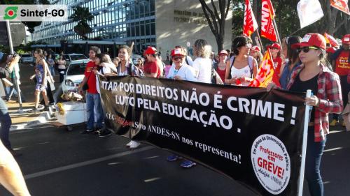 Estudantes, professores, técnicos-administrativos de instituições de ensino, profissionais da saúde, militantes de movimentos sociais e demais trabalhadores se reuniram para protestar contra os ataques do Governo Temer e denunciar a farsa do ajuste fiscal, proposto na PEC 55. Mobilizados na Ocupação do Câmpus IFG, os estudantes da se juntaram aos servidores para marchar rumo ao centro da Capital. No trajeto, foram distribuídos panfletos à comunidade, enquanto os manifestantes se reversavam ao microfone. As palavras de ordem alertaram sobre os perigos dos projetos que tramitam no Congresso Nacional.
