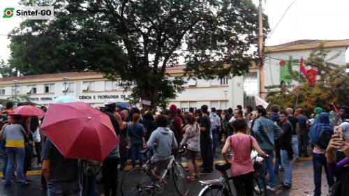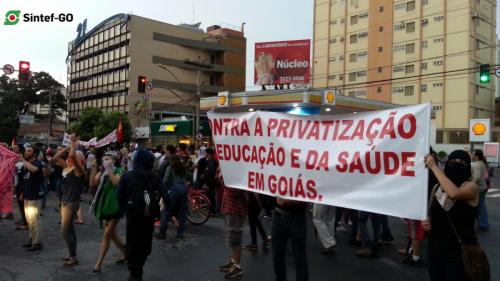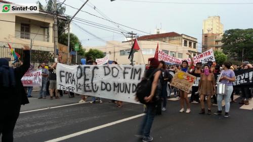 Estudantes, professores, técnicos-administrativos de instituições de ensino, profissionais da saúde, militantes de movimentos sociais e demais trabalhadores se reuniram para protestar contra os ataques do Governo Temer e denunciar a farsa do ajuste fiscal, proposto na PEC 55. Mobilizados na Ocupação do Câmpus IFG, os estudantes da se juntaram aos servidores para marchar rumo ao centro da Capital. No trajeto, foram distribuídos panfletos à comunidade, enquanto os manifestantes se reversavam ao microfone. As palavras de ordem alertaram sobre os perigos dos projetos que tramitam no Congresso Nacional.